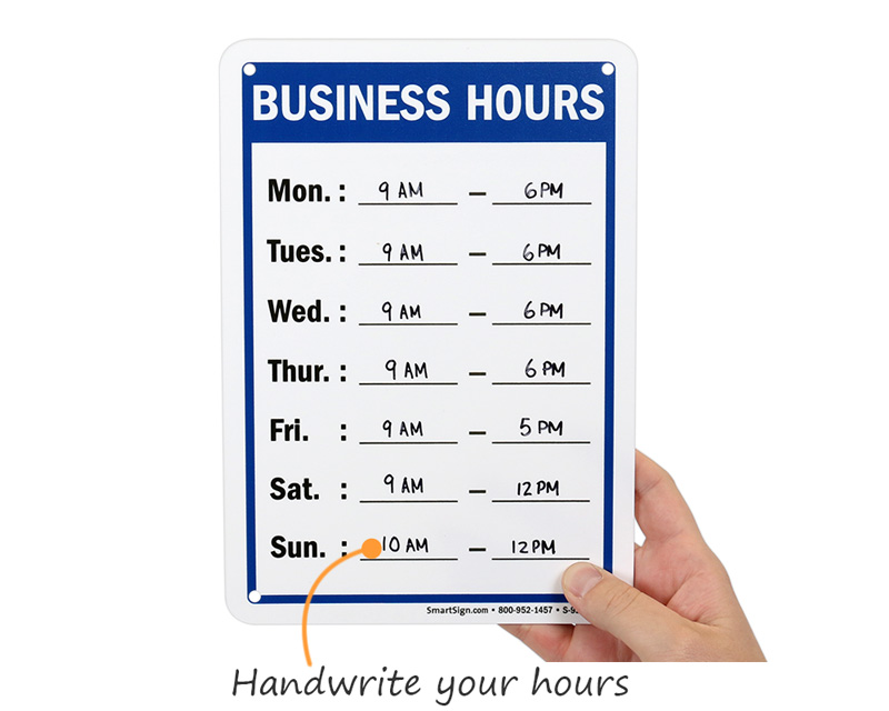 Customizing and conveying your business hours using our signs is a breeze. Simply select a template and insert your own text.