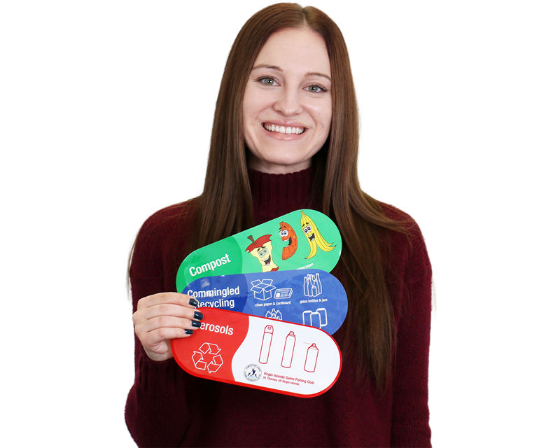 Graphics and color-coding ensure everyone places the right trash in the right bin.