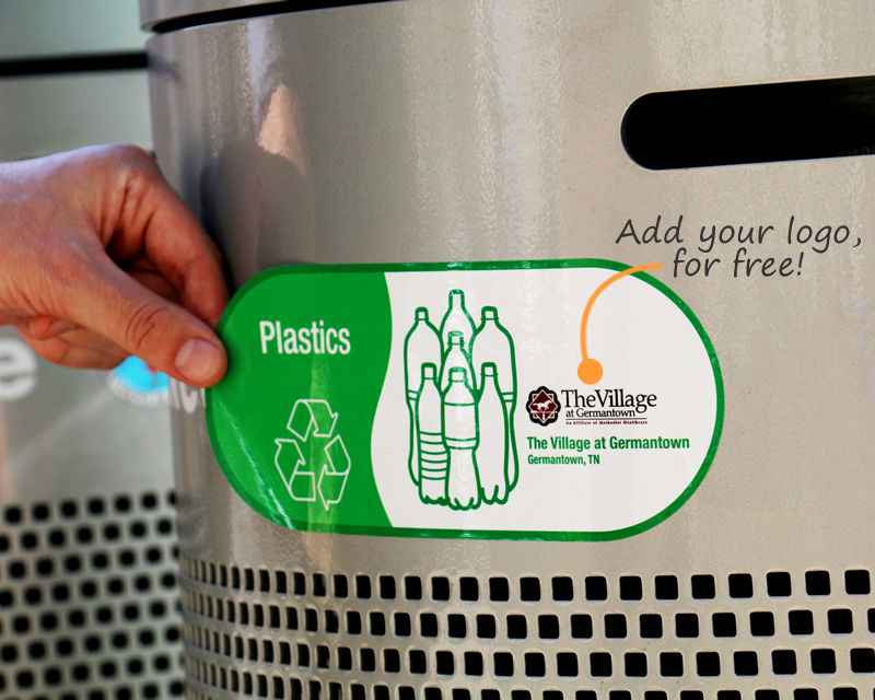 Yes, we offer a wide range of sizes to fit any container. Our selection includes small decals that are perfect for desk-side bins, medium sizes for standard recycling containers, and large-format decals designed for high visibility on 96-gallon carts and commercial dumpsters. A product like our Recycling Center Sign is perfect for large containers. You can browse all options on our main recycling signs page.