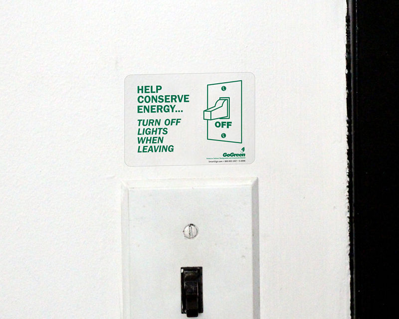 Place conservation signs at point-of-use locations: paper towel dispensers, light switches, thermostats, and faucets, where immediate action can be taken, rather than general areas.