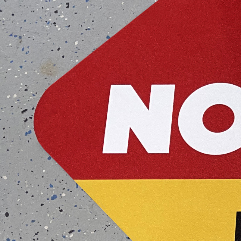 Custom floor signs come with strong adhesive backing and are extremely easy to install. These are most suited for smooth floors and can be applied to low-ply commercial carpets as well. All that you have to do is clean the surface and apply your decal. Floor decal materials are best suited for smooth surfaces, although SlipSafe heavy-duty and AlumiGrip can be used on textured, hard surfaces as well.