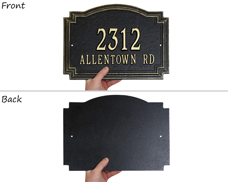 Yes, all of our custom address plaques and other wall-mounted plaques ship with the necessary mounting hardware for a simple and secure installation. This ensures you have everything you need to display your plaque immediately upon arrival. For example, a product like our Rochelle Standard Wall Address Plaque includes the appropriate screws and anchors for a clean, professional finish.
