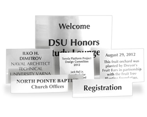 Our paint-filled engraved steel signs have a wide range of uses. Their durability allows them to be incorporated into industrial settings like equipment plates for example. Their striking appearance is perfect for your home or office.