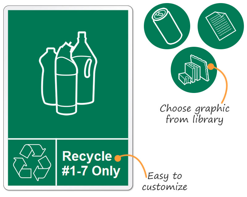 Stay ahead on recycling with these bold graphic recycling labels. Recycling preserves our valuable resources and keeps your facility 'green'. Choose from a wide variety of item-specific, graphic recycle labels to dispose of metals, plastics, empty aerosols and more. Easy self-adhesive labels improve your safety environment.