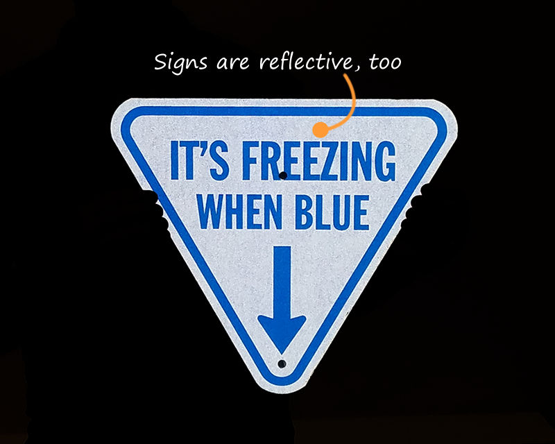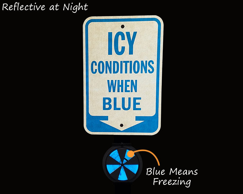 While the sign itself is self-explanatory, to further ensure that everyone understands the meaning, you can add the supplemental ice alert signs that are specifically designed to convey the functionality of the indicators and reflectors. These signs tell people that icy/freezing conditions prevail when the indicators/reflectors are blue.