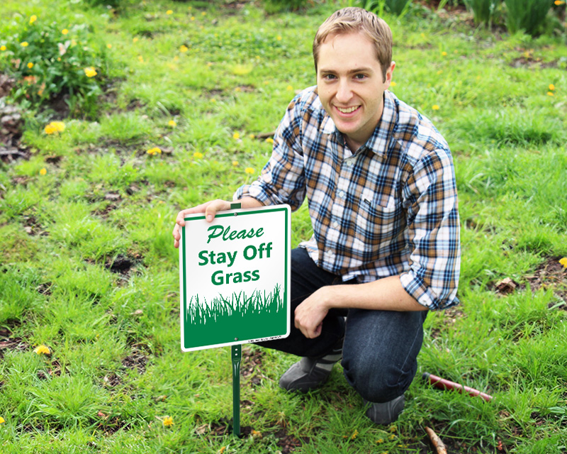 These LawnBoss® Keep Off Grass and Keep Off Lawn Signs come preassembled as 10" x 12" aluminum signs with 3' stakes. Property Managers love them!