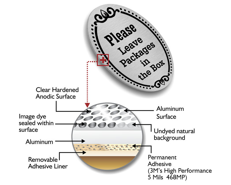 • Our anodized aluminum DiamondPlate™ signs can easily be mounted with screws or their aggressive adhesive backing. Their elegant appearance is perfect for residential use. Their subsurface printing ensures they wont scratch or fade.