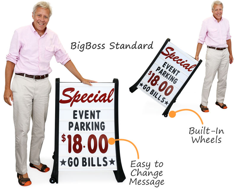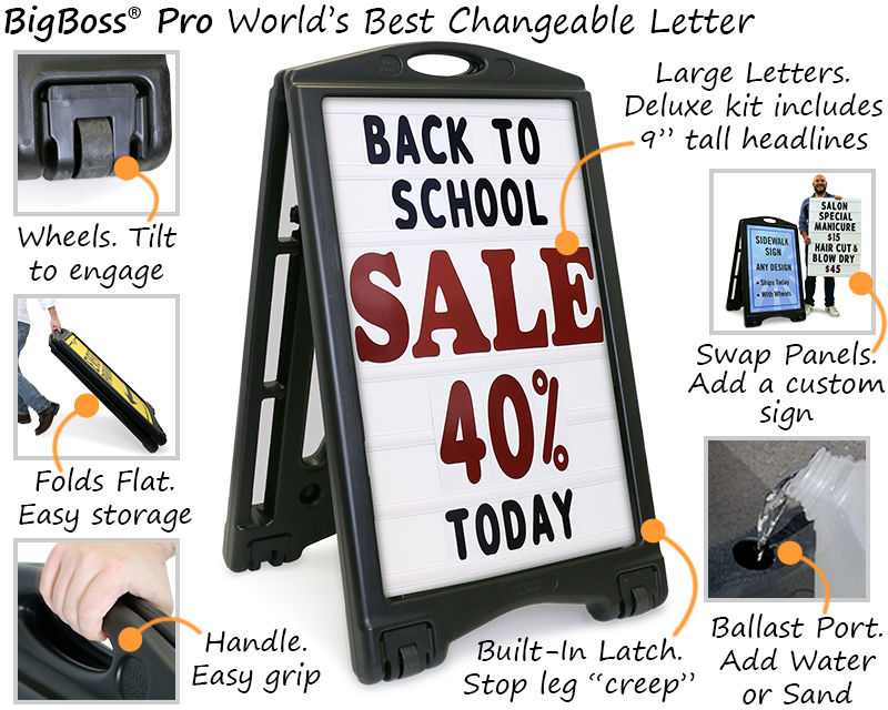 • New. Order the BigBoss Pro Frame with the classic changeable message boards at a special promotional price! New foldable design allows for compact storage.