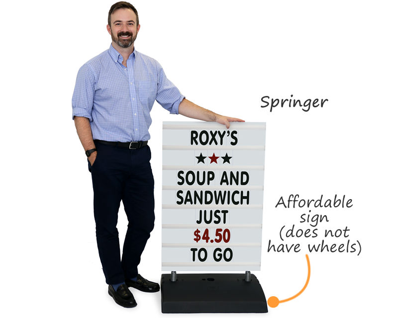 - • Portability. Traditional sidewalk signs are bulky to move. Most our sidewalk signs feature wheels, which make a big difference when you have to bring the sign inside every night.