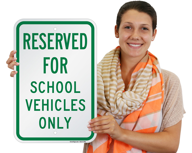 Protect your most important assets with school parking signs. Perfect for teacher parking, school zones, buses, and entrances. Available in a range of messages and colors.
