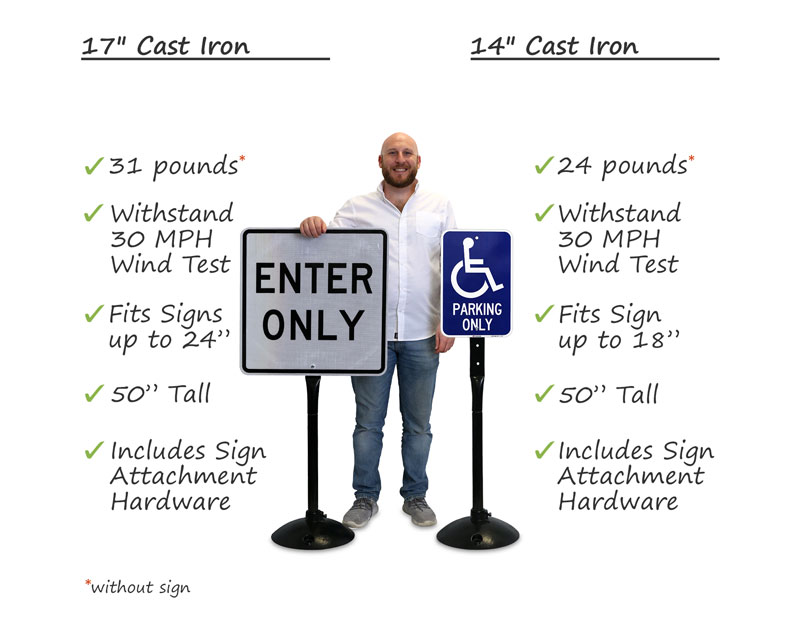 About our Sign Bases - Portable, Cast Iron, and Wheeled Sign Bases