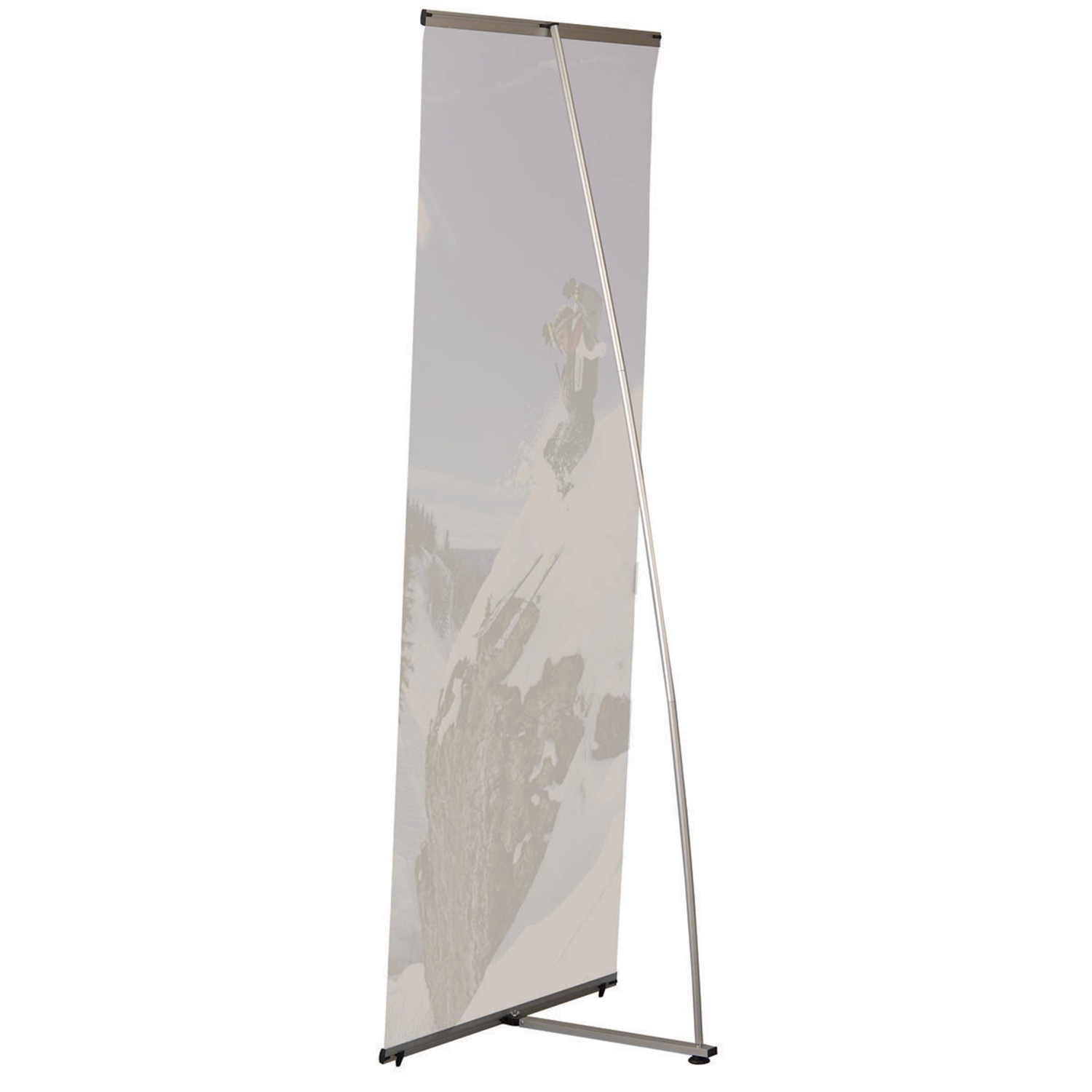 This lightweight L-shaped banner stand is a high-impact solution for displaying your promotions, announcements, deals, and advertisements. This single-sided display is easy to carry and store. You can change out the banner in seconds with no tools required for setup.