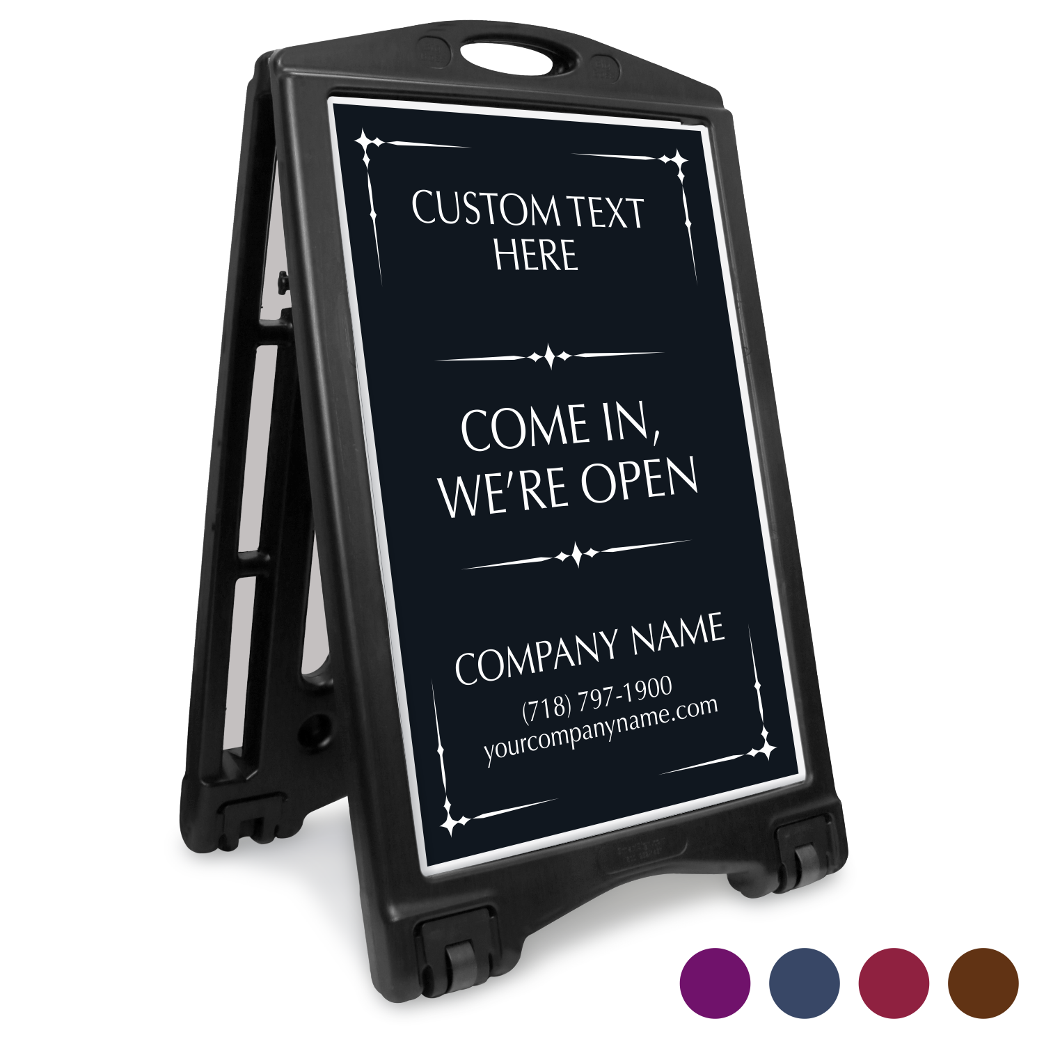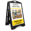 Love this sign! I love that it folds up & has wheels. Only thing I would recommend that maybe add a little notch to the bottom of the sign that slides in becuz without it, the sign bows a touch at the bottom, but other than that, I absolutely LOVE this sign! I will be ordering more inserts for it.