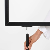 The use of this Slide-In info board is fairly easy and it is Double-Sided. You can load 2 sign holders back to back, visible on both sides. To load or change a graphic, Remove the backing with the anti-glare PETs. Position the poster between the backing and the PETs, and slide the backing in. It allows a clear view of the print, poster and protects the artwork from dust and direct light.