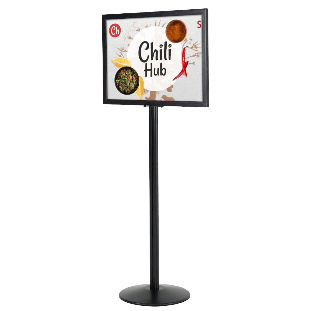 This floor standing Sign Holder Holder Stand is a perfect advertising solution in a store or reception with a double-sided frame for back-to-back prints. This dual-sided display helps to maximize your floor space while allowing your advertising message to be seen by customers around. As the poster is top-loaded, it is easy to place or replace with only one person.