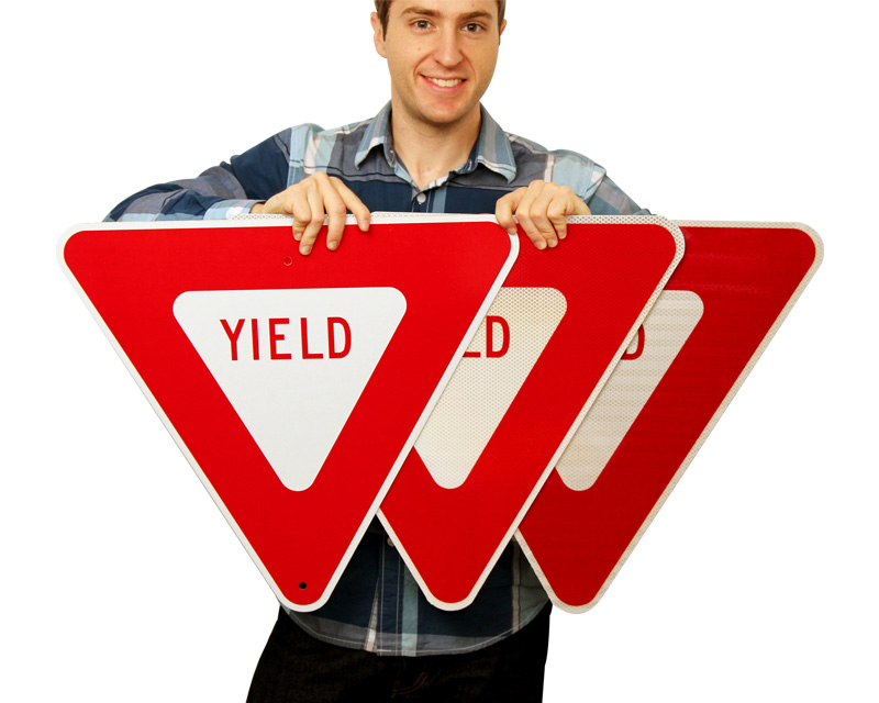 Assist motorists in identifying approaching or merging traffic by using officially sanctioned Yield Signs from the professional state highway department. These signs are available in four different sizes: 18 inches, 24 inches, 30 inches, and 36 inches, all of which help you comply with FHWA R1-2 and MUTCD regulations.