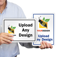 Custom signs give you the freedom to design your unique sign. These are usually in a template form where you can add your text, upload a logo, etc. Our completely customizable ‘upload your own art’ signs bring personalization to the next level by allowing you to do more. With these signs, you can have your design transformed into a sign. This can include everything from the sign text, font, and alignment to colors, motifs, graphics, and more.
