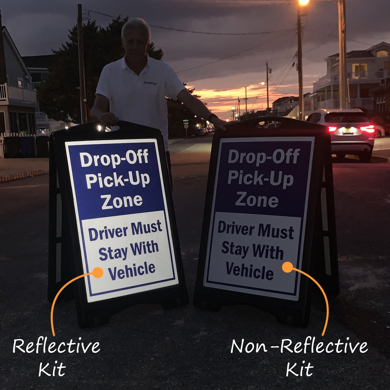 • Bundle includes two reflective sign panels and a frame.